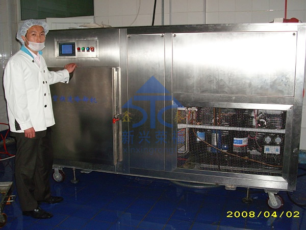 2、冷卻均勻,品質高。真空冷卻的冷卻是表面和中心同時進行,冷卻溫度均勻,不會外冷內熱。而強風和冷庫在冷卻的時候是外表先冷,這樣會導致食品外冷內熱,影響口味并會引起細菌繁殖。