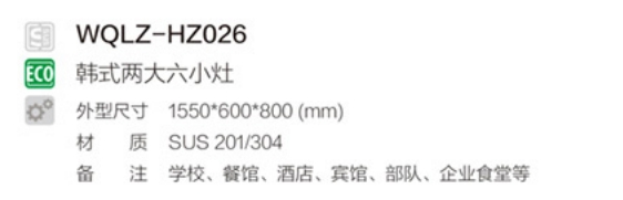 消毒設備 / 產品中心 / 商用灶具設備 / 二大六小韓餐灶